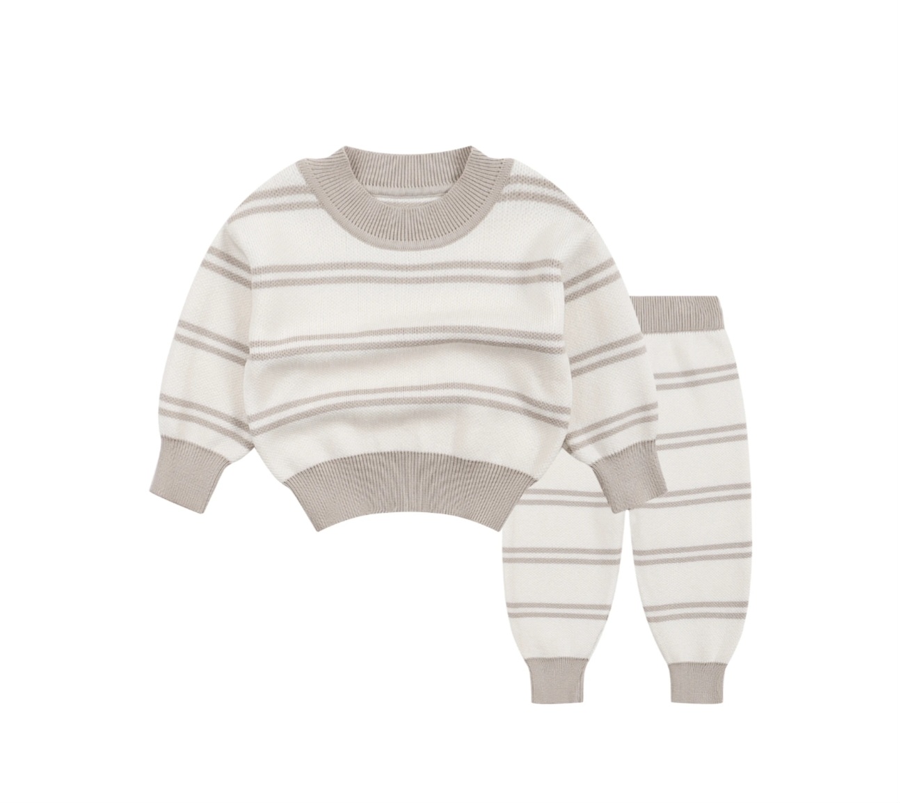 white and grey stripped set